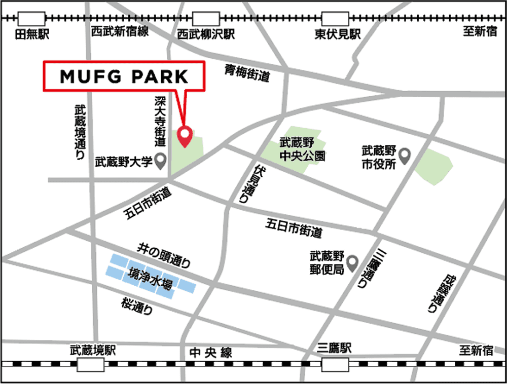 - JR線 吉祥寺駅/三鷹駅/武蔵境駅より 関東バス「武蔵野大学」下車すぐ