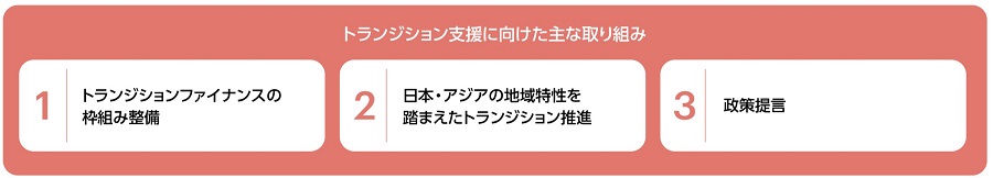 トランジション支援に向けた主な取り組みは以下の3点です。詳細はClimate Report 2025(P29-P39)をご参照ください。