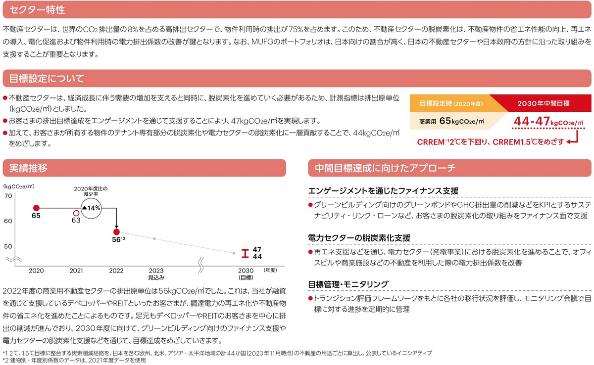 カーボンニュートラル実現に向けた道筋やプロセスは、セクターによって異なることから、個別セクターごとに、事業の特性やガイドライン、お客さまの目標設定状況等を確認し、これを踏まえた検討を行っています。