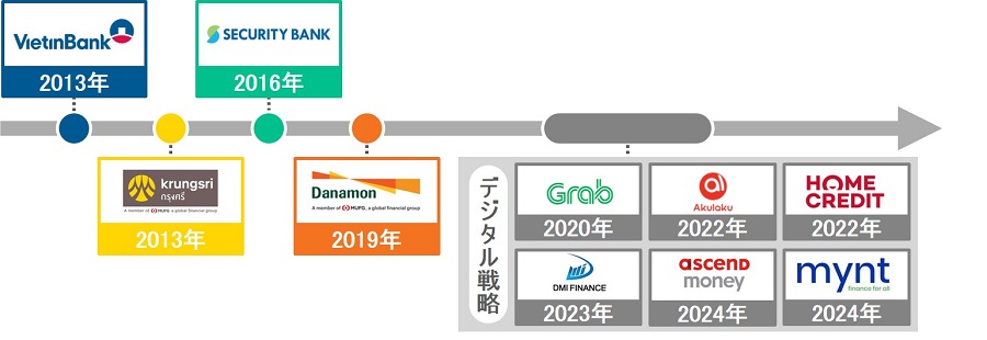アジアではインターネット、スマートフォンの普及等を背景に、デジタル金融サービスのニーズが急速に高まっています。今後、さらなるデジタル化が予想されるアジアのコンシューマーファイナンス領域の成長捕捉、将来のトッププレイヤーの取り込みへの布石のため、MUFGはデジタル金融事業者への戦略出資を開始、デジタル金融プラットフォームの土台形成に着手しています。