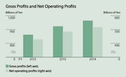 Gross profits rose 4% year on year (¥41.2 billion) to ¥965.2 billion. Net operating profits were up 7% year on year (¥31.6 billion) to ¥517.1 billion. Net interest income fell on a contraction in lending spreads as well as a decrease in deposit revenues on lower interest rates. However, this was covered by an increase in revenue from fees and commissions, and overall profits rose.