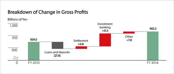 The domestic corporate average loan balance (excluding government) rose 5% year on year (¥2.1 trillion). This reflected our initiatives such as fund demand creation and responding to event finance including M&A finance. Investment banking revenues (note) rose as we provided our customers with high-value-added proposals to meet their challenges, and forex revenue also grew as we met transaction needs in a rapidly changing market.