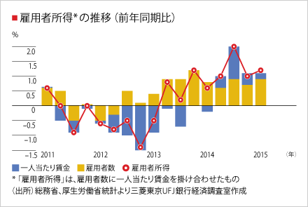 こうしたなか、日本経済は、消費税率引き上げによるマイナスの影響を受けつつも、総じてみれば緩やかな回復基調を維持しました。個人消費は、消費税率引上げの影響等で年度前半にもたつきがみられましたが、足元では持ち直しの動きが徐々にはっきりしてきました。また、設備投資については、円安等を受けた企業業績の改善等を背景に、前向きな動きがみられました。