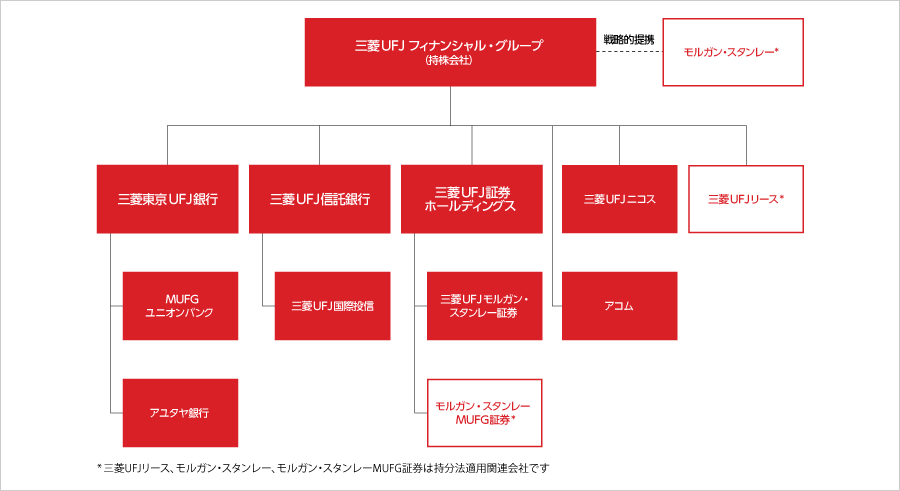 MUFGは、商業銀行・信託銀行・証券会社をはじめとしたグループ会社はもちろん、提携先との連携を通じて、お客さまに付加価値の高い金融サービスを提供しています。